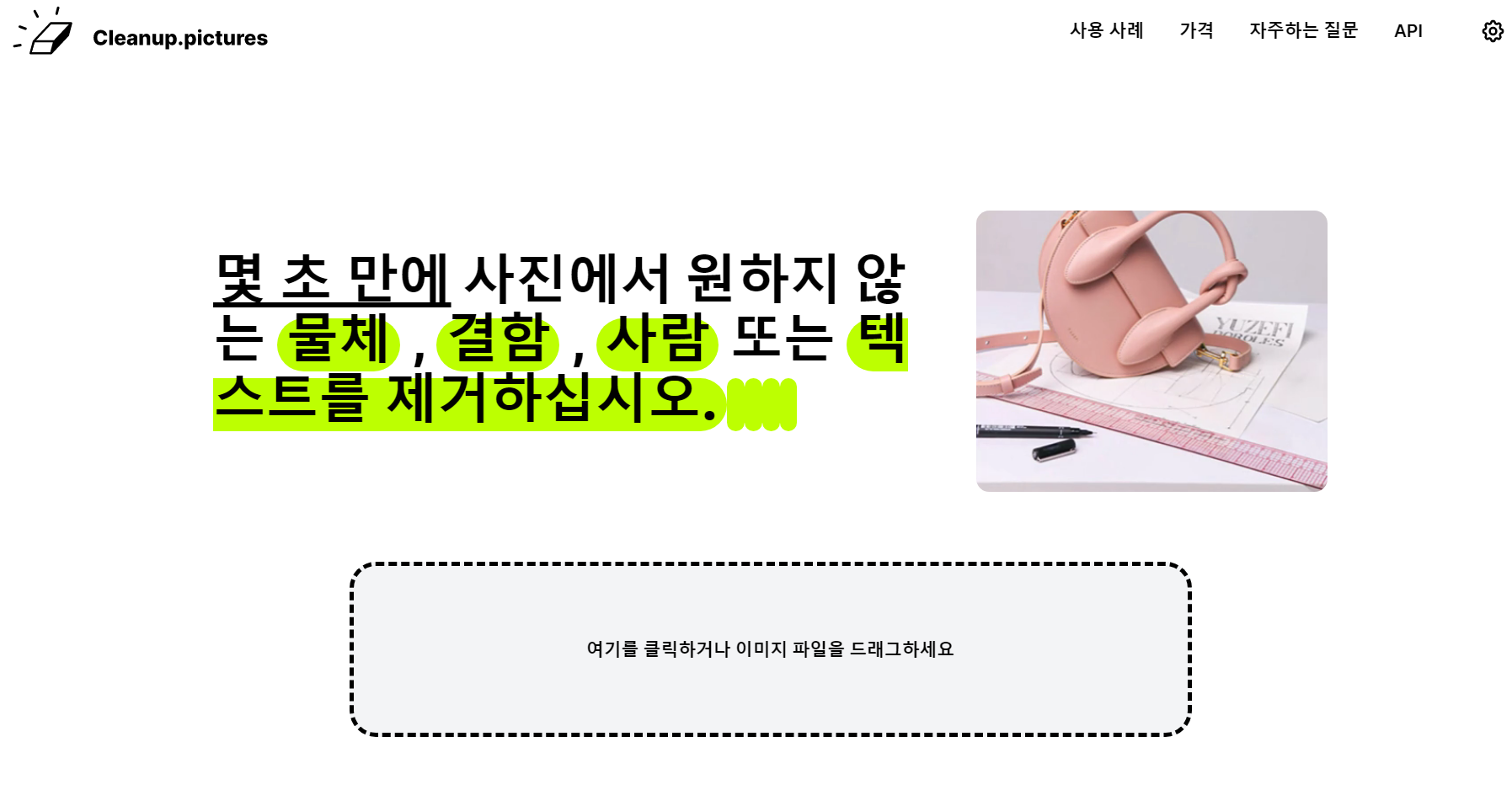 - cleanup.pictures를 사용하여 이미지를 수정할 때에는 저작권 보호 이미지를 사용하지 마세요. 저작권 보호 이미지를 사용하면 법적 문제가 발생할 수 있습니다.