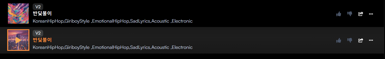 1분 만에 생성한 AI 음악 결과물을 보여드리겠습니다.
