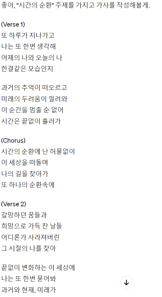 AI에게 시간의 순환에 관한 가사를 쓰고 싶다고 요청하였습니다.