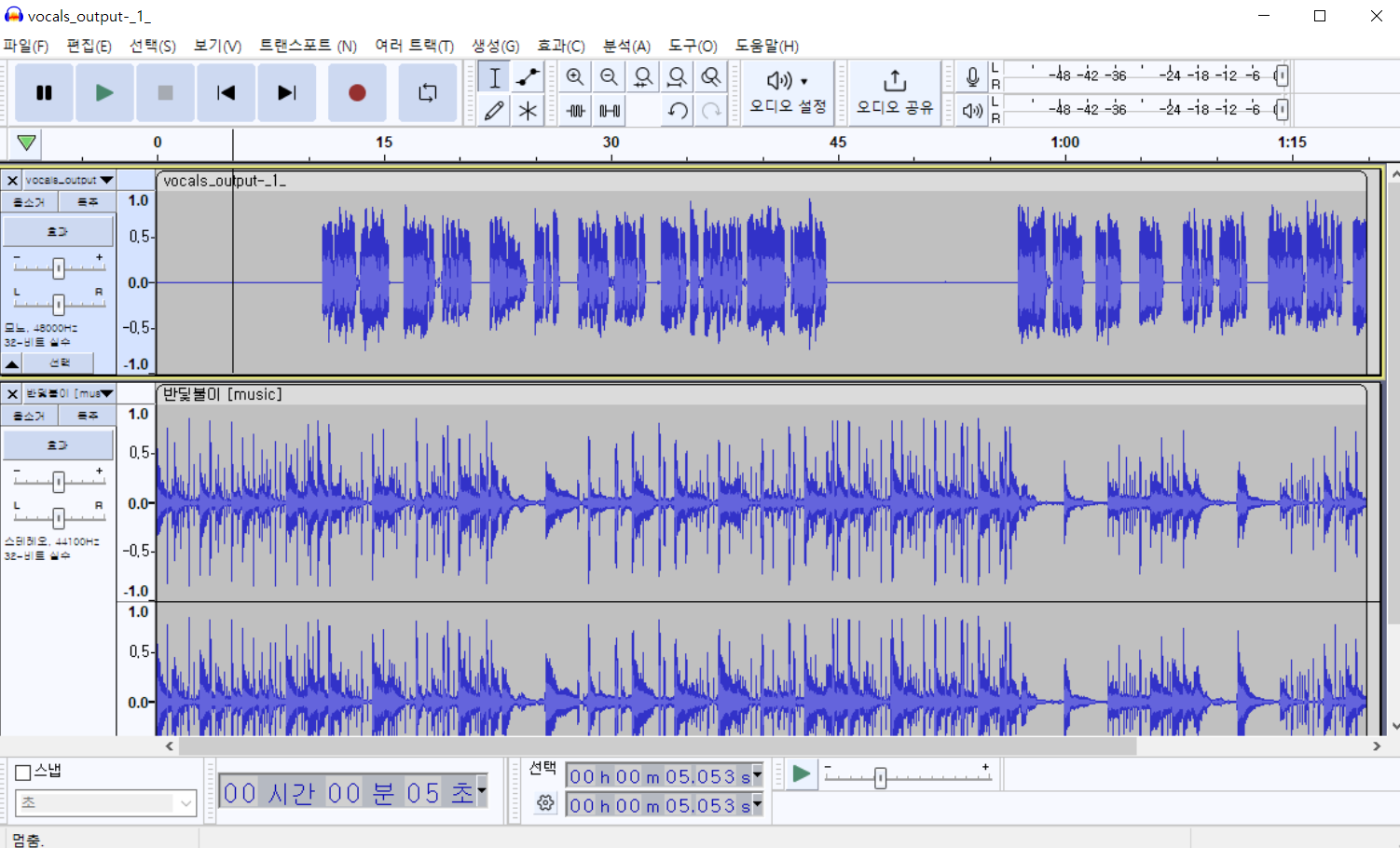 우선은 생성된 음악의 보컬과 음원을 따로 분리해줘야합니다.