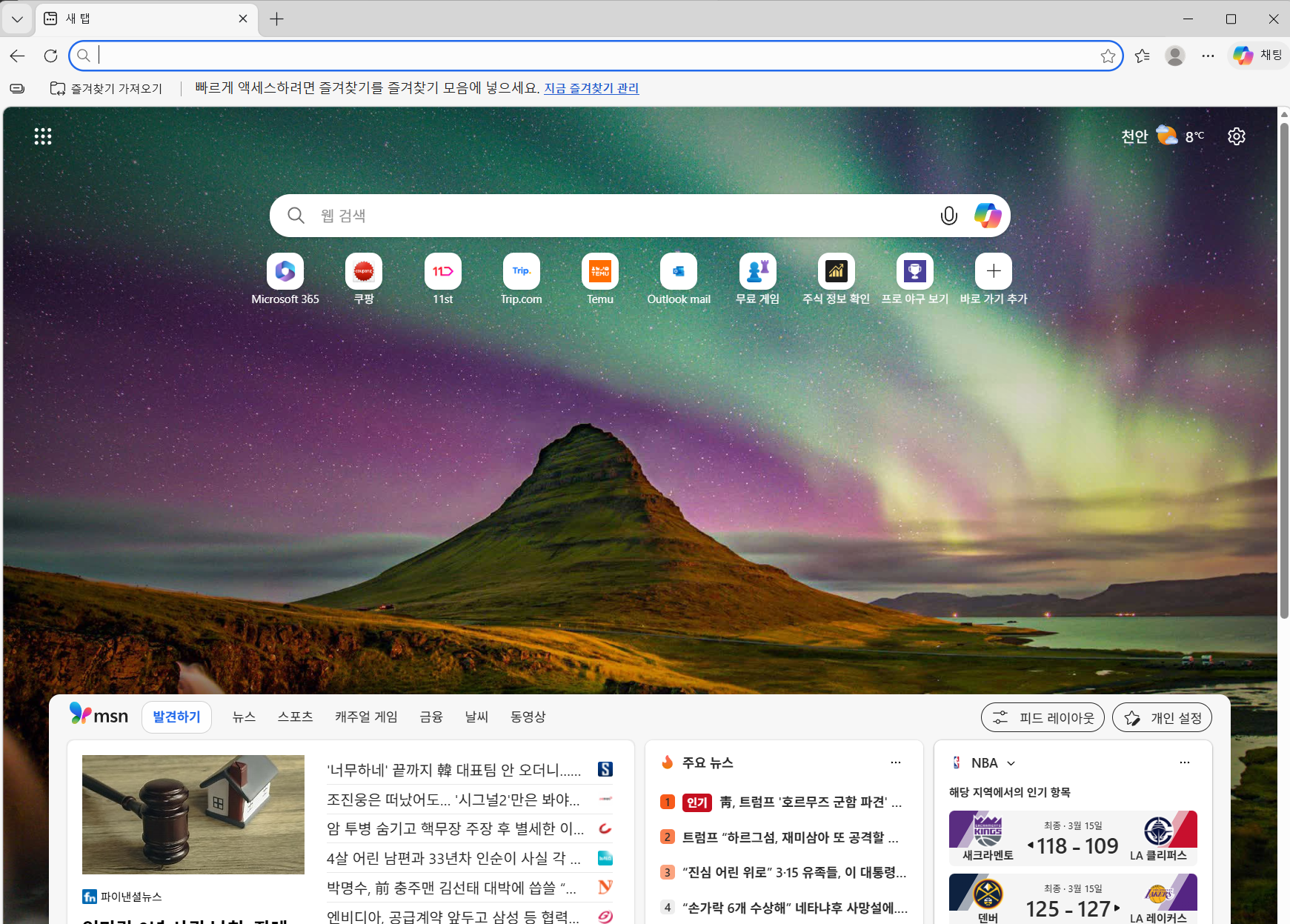 위 스크린샷을 보면 우측 상단에 프로필 아이콘이 보입니다. Playwright의 새 Chromium과 달리, 평소에 쓰던 Edge 그대로라서 로그인 상태가 유지되어 있습니다.